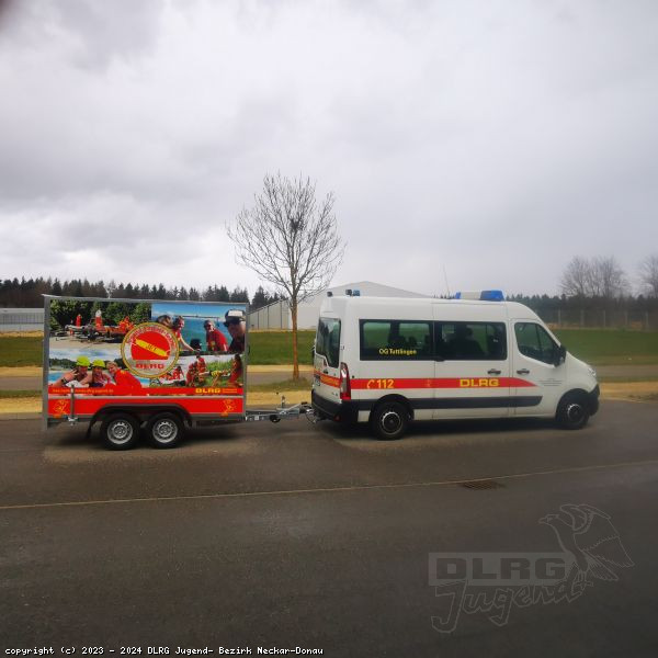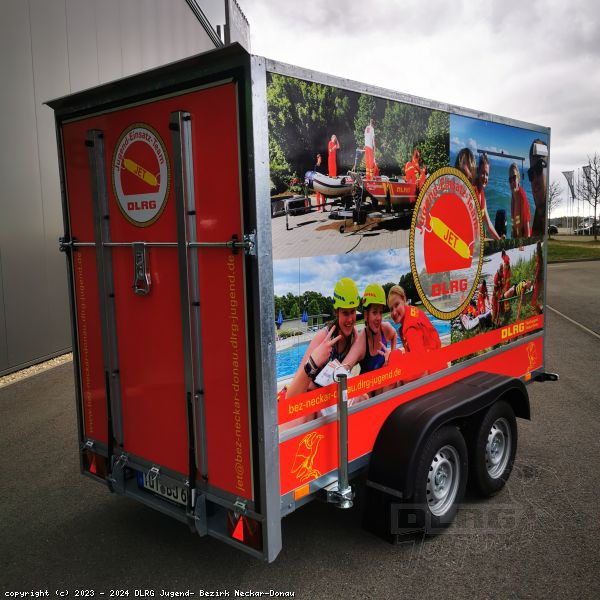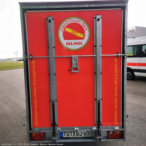 Unser JET-Anhänger beinhaltet Material für die vielfältigen Aufgabengebiete der DLRG und kann von allen Ortsgruppen im Bezirk Neckar-Donau ausgeliehen werden.