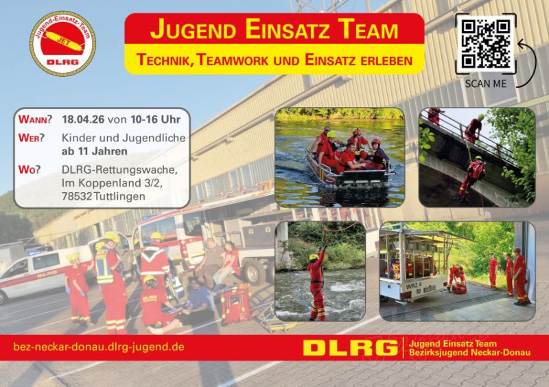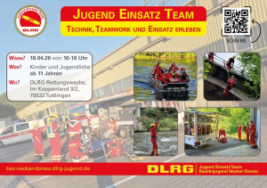 Wir stellen am 18. April unser Jugend-Einsatz-Team (JET) vor. Allen Interessierten zeigen wir die vielfältige Arbeit der DLRG: Bootfahren, Strömungsrettung, Klettern, Sanitätswesen und vieles mehr.